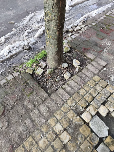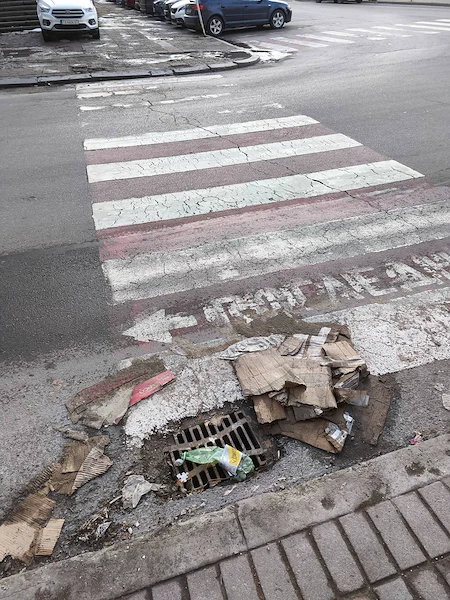 Тротоарите са напълно разбити, бордюрите липсват или са натрошени, а отводнителните шахти са трайно задръстени с пръст, парчета картон и пластмасови бутилки. Това прави преминаването истинско изпитание и създава предпоставки за локални наводнения при всеки по-сериозен валеж.