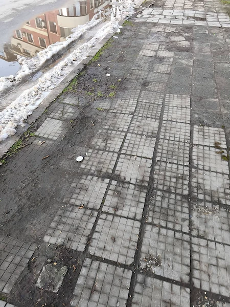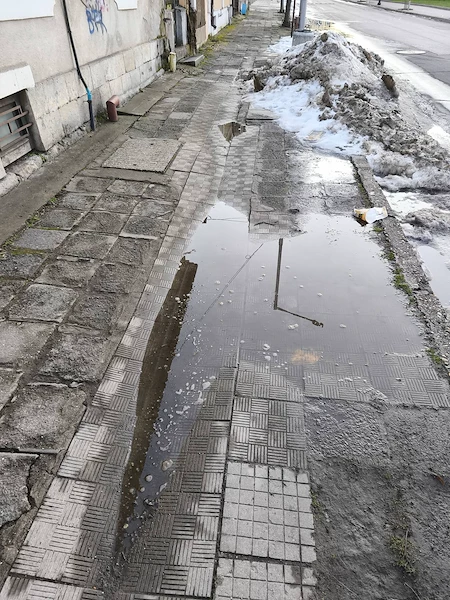 Централната улица "Иван Вазов" в Русе, която свързва Математическата гимназия и Регионалната библиотека, се намира в критично състояние за преминаващите пешеходци. Жители на града изразиха силното си възмущение от непроходимите тротоари и натрупаната кал, публикувайки снимки в социалните мрежи, които показват реалното състояние на инфраструктурата.