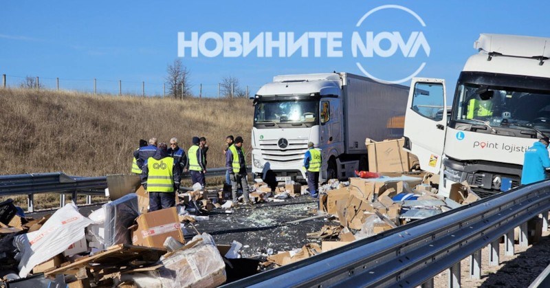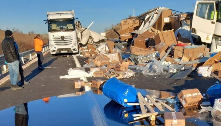 Инцидентът е станал около 4:00 часа. При удара между двата камиона се е разпилял товар, който трябва да бъде почистен.