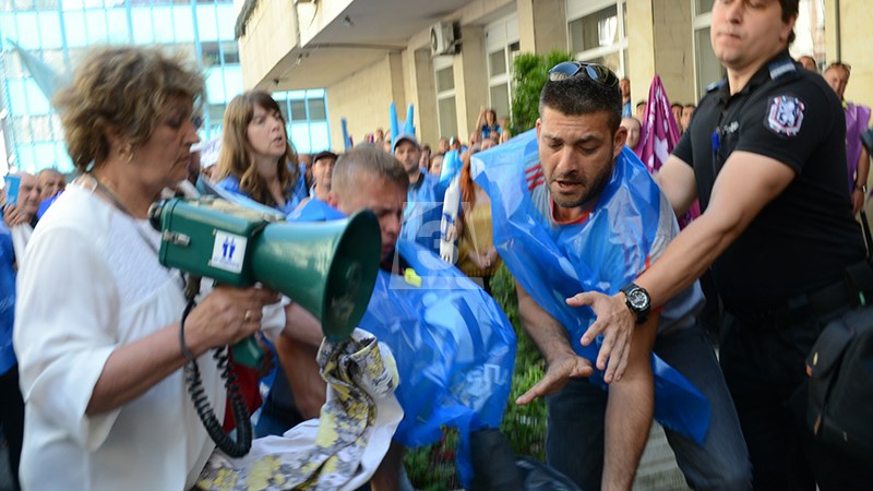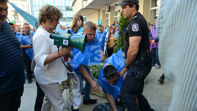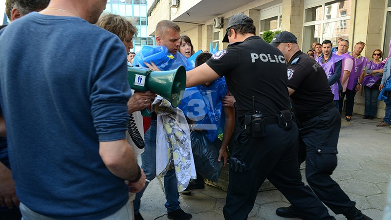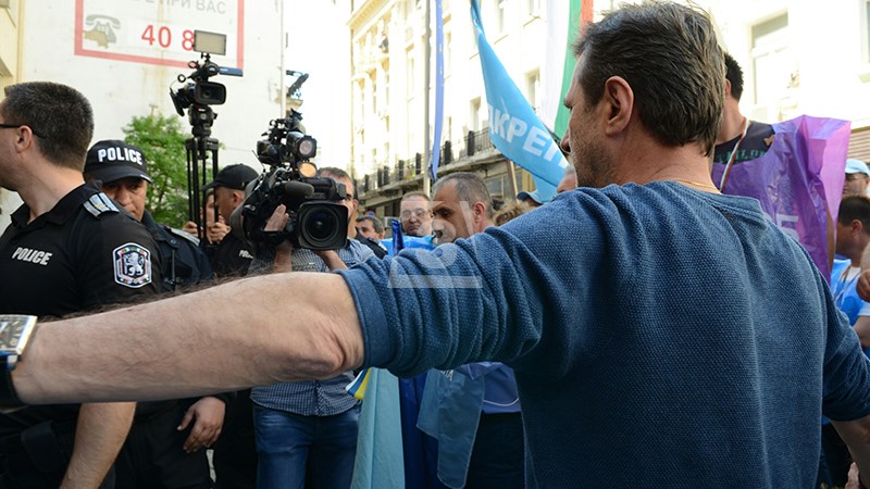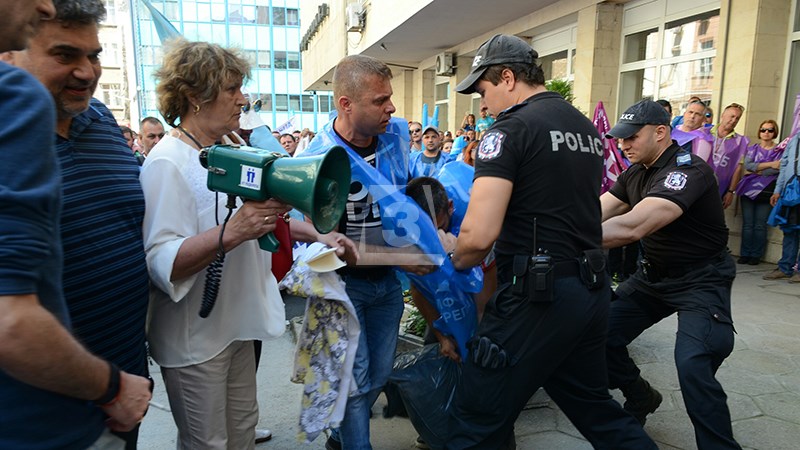 Напрежението се покачи, когато протестиращ поиска да изсипе чувал с въглища пред Министерството на енергетиката. Полицията се опита да разблъска тълпата, но срещна отпор. Наложи се президентът на КТ "Подкрепа" Димитър Манолов да укротява страстите.