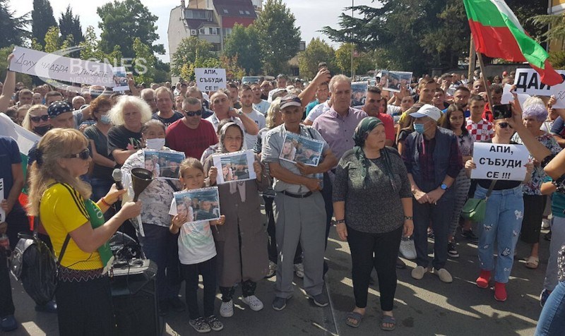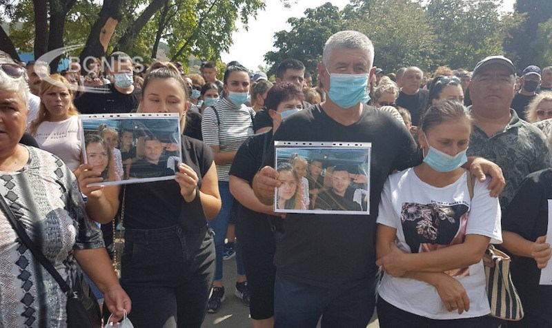 Протестиращите скандират "Тировете вън", "Мафия", "Стига жертви", "АПИ събуди се". Те издигнаха плакати със снимки на пострадалото семейство.