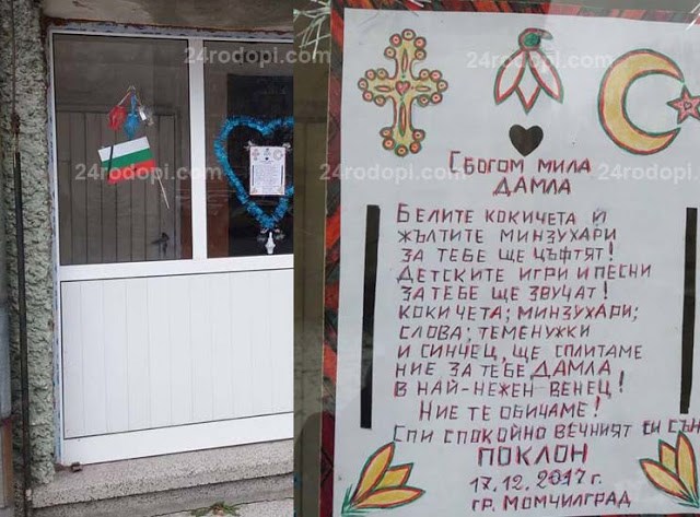 Трогателно послание е поставено на входа на блока, в който живееше малката Дамла.