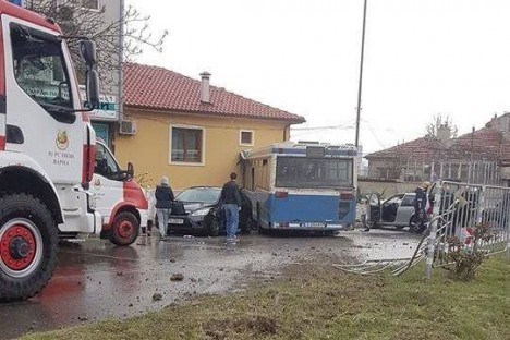 Сигналът за инцидента е подаден около 13.40 ч. При маневра рейсът, обслужващ линия 7 на градския транспорт, блъска други два автомобила и се отклонява в стената на къща в близост до пътя.