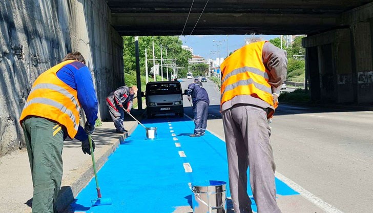 - положени са цветно пътно покритие и хоризонталната пътна маркировка на обособената велоалея по бул. Христо Ботев;