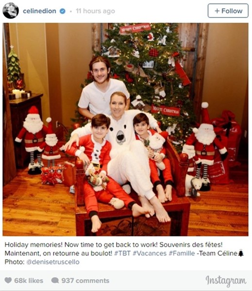 Селин Дион сподели рядка и красива семейна снимка с тримата си синове: 15-годишният Рене Чарлз и близнаците Нелсън и Еди, които са на 6.