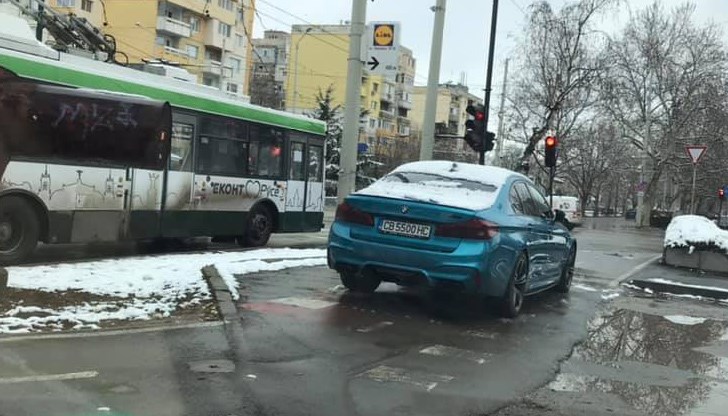 Автомобил със софийска регистрация "препуска" по велоалеята на булевард "Липник" в Русе.