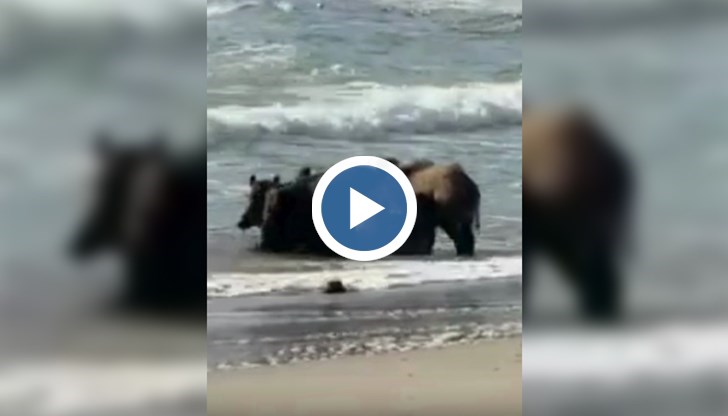 Животните се възползвали от един от последните хубави дни за плаж и не пропуснали възможността да се освежат. Дивите прасета първо се разходили из близката тревиста растителност и по пясъка, след което спокойно влезли в морето, за да се изкъпят.