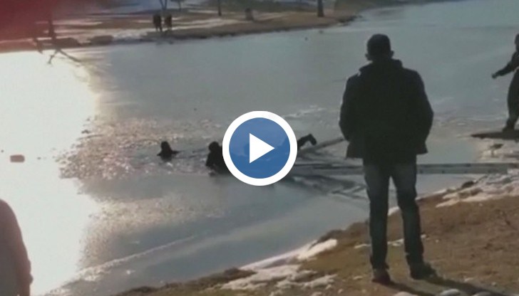 Инцидентът става в градския парк. Жена навлиза в замръзналото езеро, но ледът внезапно се пропуква. В опит да ѝ помогне нейният съпруг също пада в студените води. Полицаите, които пристигат на място, се опитват да достигнат двойката с помощта на въжета и стълба, но ледът отново се пропуква и те също падат в езерото. За щастие спасителната акция завършва с успех.