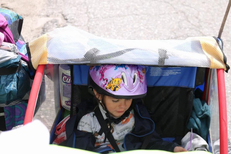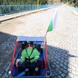 Над рикшата с началото на прехода се вее трикольорът на България и много хора ги поздравяват по пътя. Оказва се, че на Ева това приключение много ѝ допада - изкарва всеки ден в рикшата около 4 часа. "В нея тя е обезопасена с колани и си има играчки. Около час и половина-два от прехода спеше, останало време играе, разглежда наоколо, пее песнички", казва таткото.