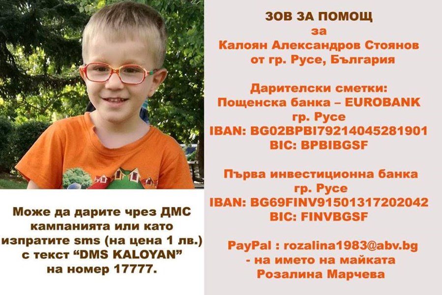 "На 25.09.2018г. след извършен паричен превод от 30000 лв. към благотворителната сметка на сина ни в ПИБ, сумата от 17000 долара, необходима за първите две вливания е събрана (общата необходима сума за всички вливания на стволови клетки е на стойност 54000 долара).
