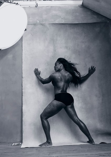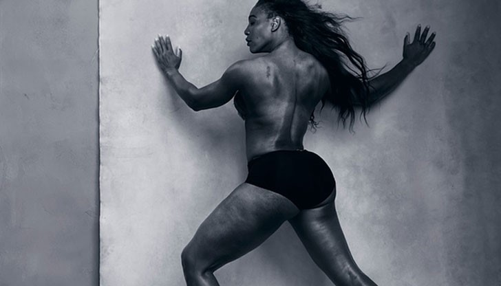 Тенис звездата Серина Уилямс е една от едва двете по-оскъдно облечени звезди – в грациозна поза, обърнала мускулестия си гол гръб към камерата. Другата е Мис Декември – комедийната актриса Ейми Шумър, която поднася към начервените си устни чаша кафе само по бельо и меки гънки от плът по корема.