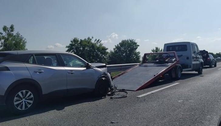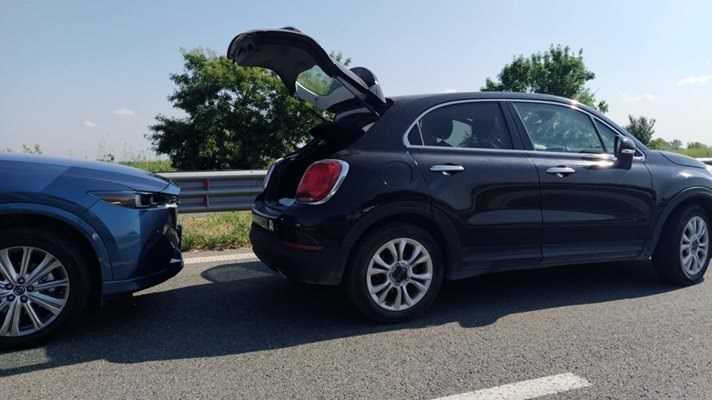 Няколко метра по-надолу в аварийната лента има 4-5 автомобила, които също са ударени, но без сериозни материални щети. Те са спрели и създават допълнително неудобство за движението.