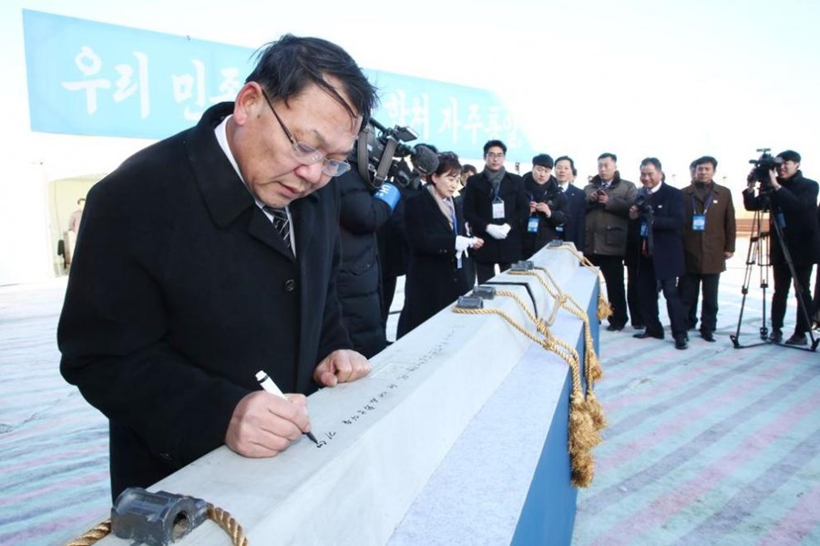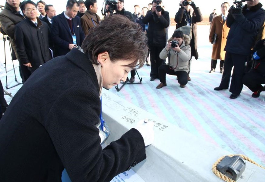 Южнокорейска делегация пристигна с влак за церемонията. Организаторите подчертаха, че това е символично събитие, а не начало на реална работа по проекта.