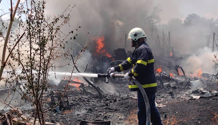 Огънят се разпространи бързо и обхвана цялата площадка на автоморгата. Освен разфасованите автомобили и старите гуми, пламъците обхванаха и територия със суха трева в района.