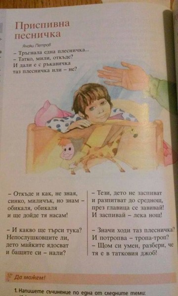 Стихотворение от учебник по литература за пети клас, в която се говори за плесници, предизвика голяма дискусия в социалните медии.