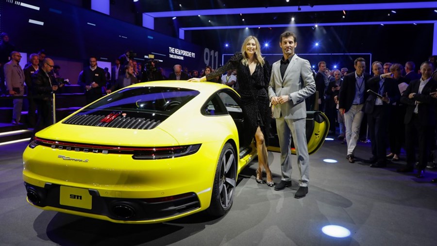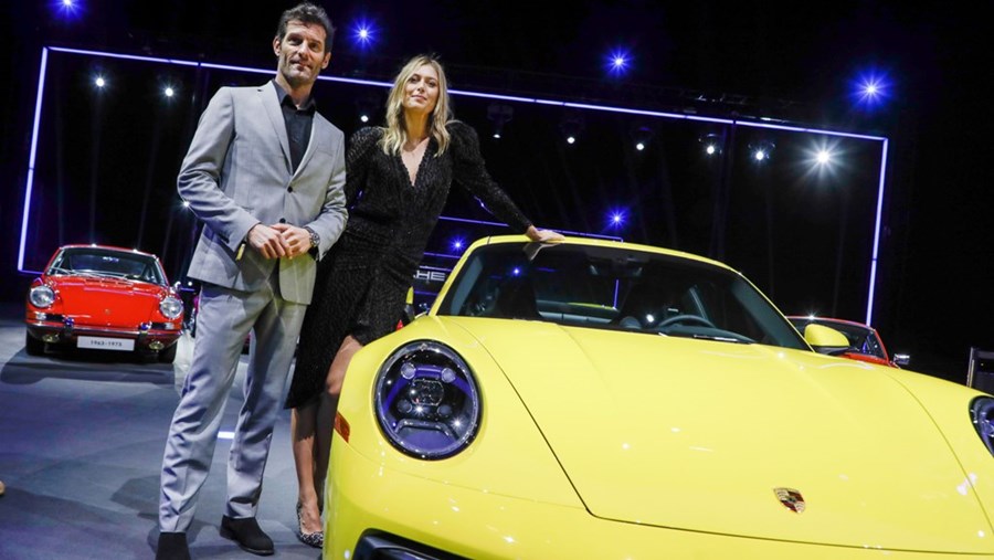Руската тенис звезда Мария Шарапова украси световната премиера на новия модел Porsche 911 в Лос Анджелис.