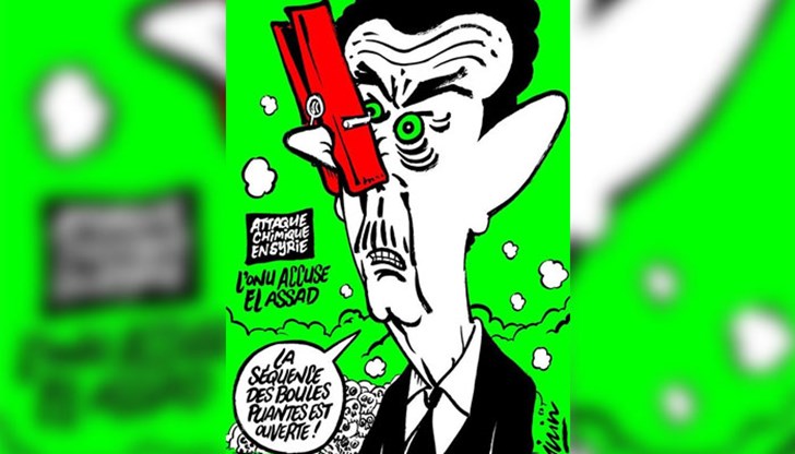 Френското сатирично списание "Charlie Hebdo" публикува карикатура на сирийския президент Башар Асад и химическата атака в провинция Идлиб.