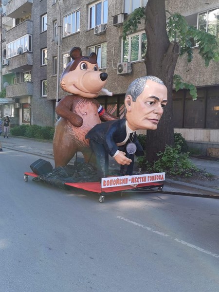 Към тях е прикрепена и мажоретка с екип на “Харвард”, което отново е препратка към премиера, тъй като той е завършил престижния университет. Върху лицето на фигурата ѝ е изобразено това на началника на кабинета на премиера Лена Бориславова.