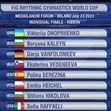 Шампионка стана София Рафаели (Италия) с 35.900 точки, пред Виктория Оноприенко (Украйна) с 35.250 и Дария Варфоломеев (Германия) с 35.100 точки.