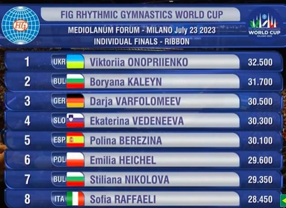 Златен медал взе Дария Варфоломеев (Германия) с 34.000 точки, а втора е София Рафаели (Италия) с 33.500.