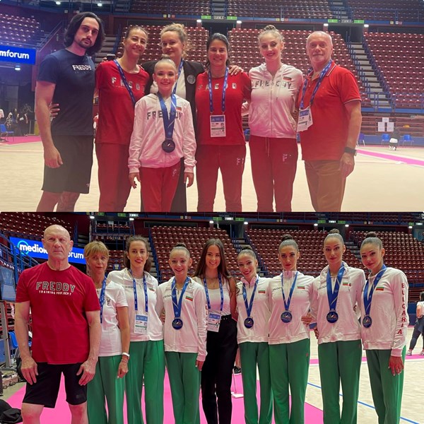 При ансамблите на пет обръча Женина Трашлиева, София Иванова, Камелия Петрова, Рейчъл Стоянов и Радина Томова взеха бронзов медал.