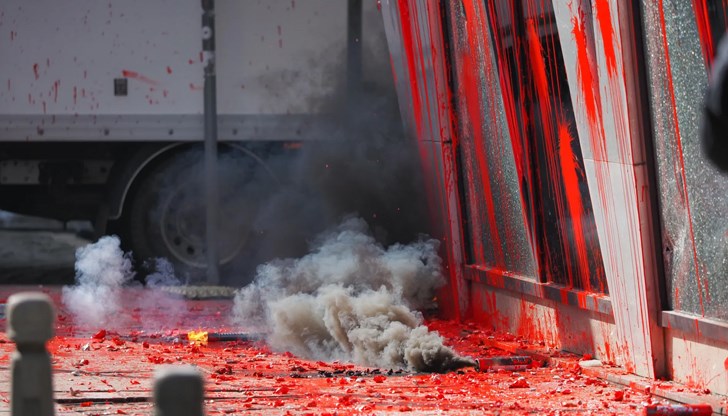 Протестиращите са атакували сградата на Представителството на Европейската комисия в София, като са я залели с червена боя и са я обстрелвали с яйца. Демонстрантите са използвали и димки, а впоследствие са запалили входната врата на институцията.