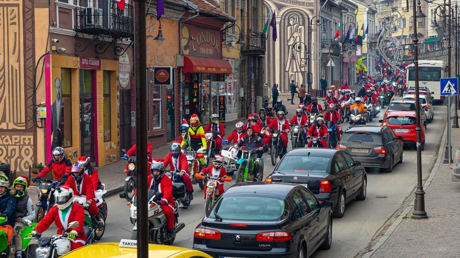 Десетки Дядо Коледовци на мощни мотори шестваха в празничния ден във Велико Търново