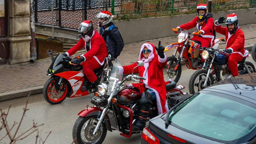 Това не е първото подобно шествие на търновските рокери в празничния коледен ден. От четири години традиционно местните любители на мотоциклетите излизат и шестват по улиците на Велико Търново, като част от благотворителна кауза за деца, болни и в неравностойно положение.