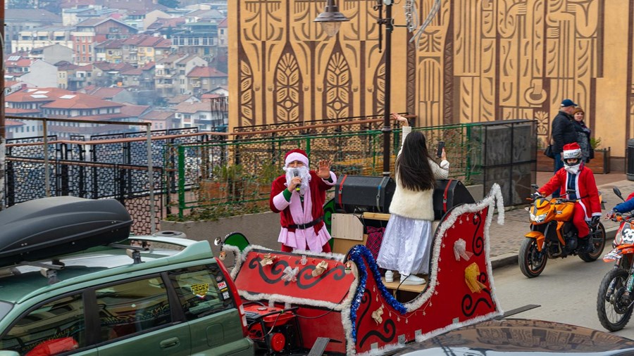 Белобрадите старци имаха дори и своя Снежанка, предвождаща шествието от истинска богато украсена коледна шейна, но теглена не от елени, а от лек автомобил. Ревът на мощните возила огласи в обедните часове старата част на града, а появата на десетките червенодрешковци, накара излезлите на разходка из старата столица жители и гости да се усмихнат, пише Монитор.