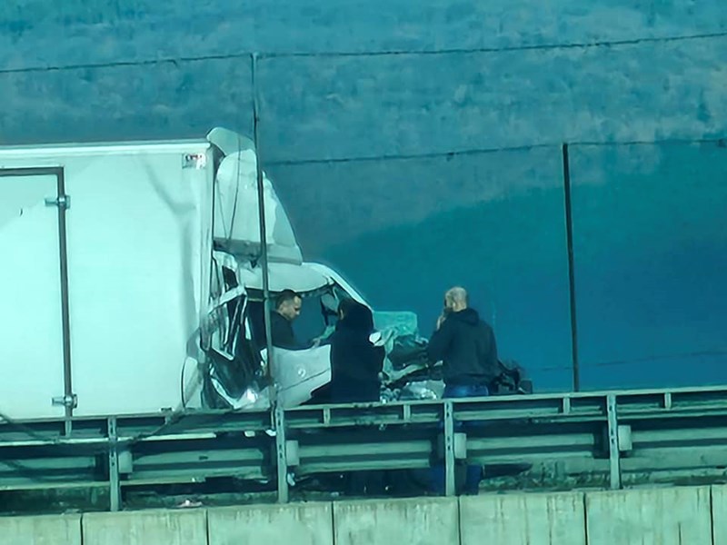 Шофьор е заклещен в катастрофирал камион на Северната скоростна тангента