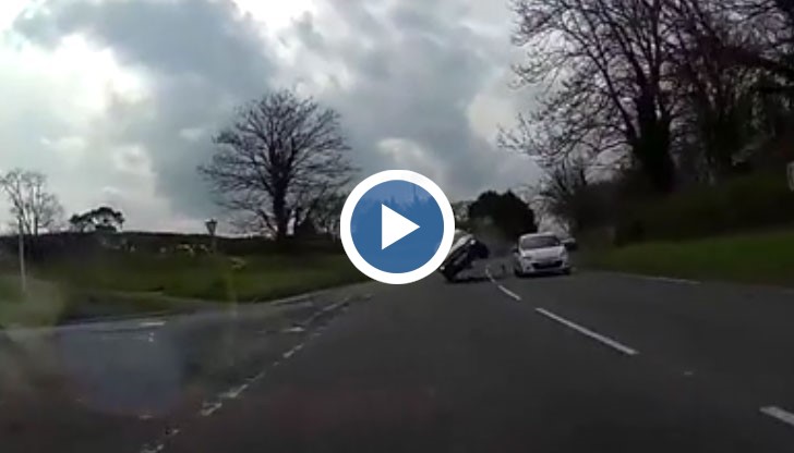 Шокиращо видео показва как водач на ван успява да предотврати челен сблъсък с идващо насреща му Ауди, пътуващо на две гуми.
