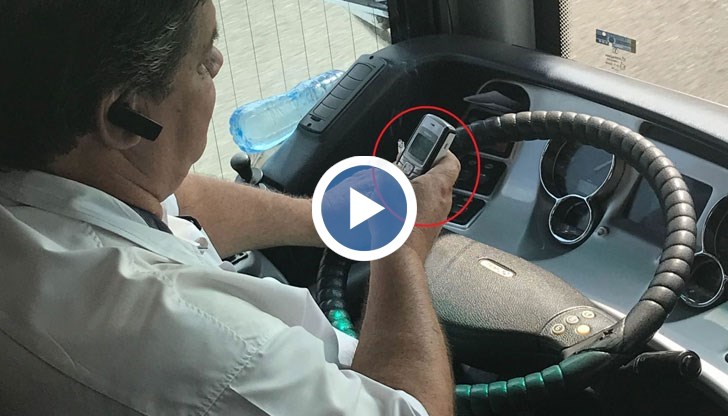 Шофьор на автобус на "Етап Адрес" пуши и говори по телефона