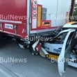 На мястото са пристигнали още и две пожарни и екипи на полицията. Движението в района е ограничено в едната лента.