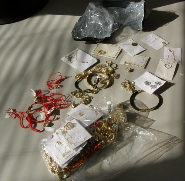 Зад тапицерията на кабината на влекача митническите служители откриват три пакета с изделия от жълт и бял метал с общо тегло малко над килограм. Експертиза установява, че бижутата са пръстени, обици, синджири и висулки от злато с различни примеси, с обща стойност 59 229 лв.