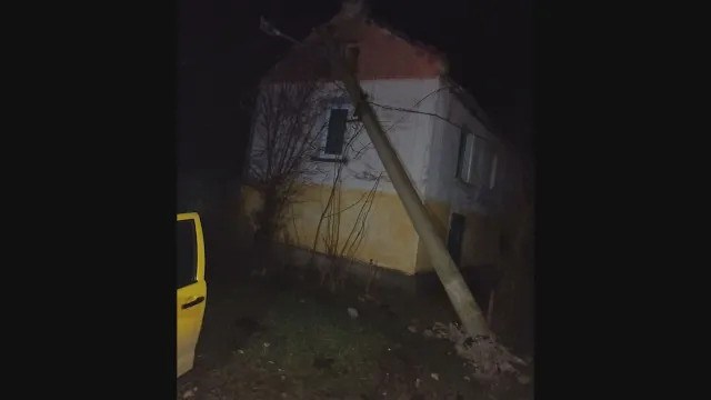 Когато полицаи и енергетици пристигат на мястото, виждат отсечен електрически стълб, опрян върху къща.
