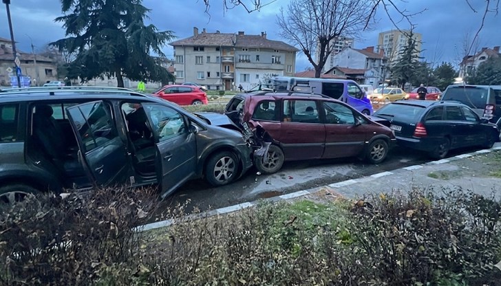 При удара са нанесени сериозни материални щети на поне три автомобила. Според първоначалната информация, движещото се превозно средство е загубило контрол и е връхлетяло върху спрелите коли.