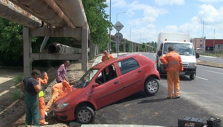 „Фиат“ със силистренска регистрация пропадна в крайпътна канавка по изграждащия се булевард „Тутракан“.