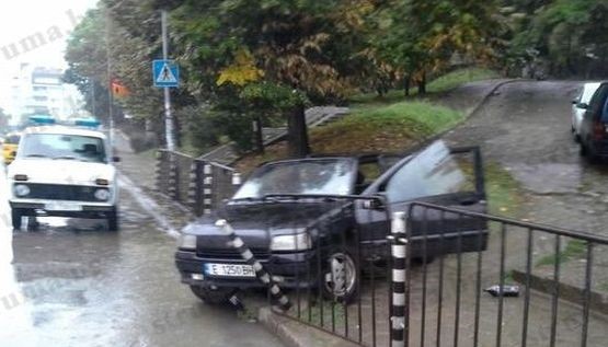 Инцидентът станал към 5.30 часа тази сутрин на улица "Митрополит Борис" зад сградата на общината. Лекият автомобил се спуска по стръмна улица, която няма изход. Водачът вероятно не познавал района, защото продължил след края на уличката, минал през бордюра, тревната площ след него и скочил върху тротоара. След това е откъртил един от коловете на парапета между тротоара и улицата. Именно оградата е удържала автомобила, за да не се „включи” в движението по "Митрополит Борис".