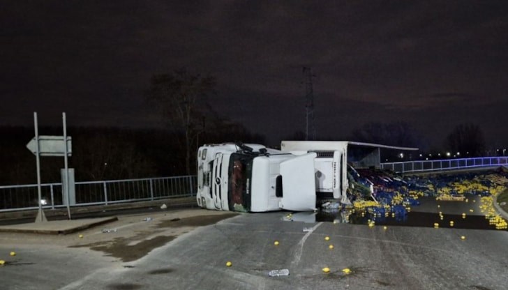 Инцидент с товарен автомобил е станал на главен път I-5 в района на град Бяла. През нощта на 14 декември, около 00:20 часа, влекач "Мерцедес" се е преобърнал на пътното платно при навлизане в кръговото кръстовище на входа на града.