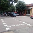 Нагъл шофьор във Враца спря на пешеходна пътека, за да си купи закуска от баничарницата на Кооперативния пазар в града.