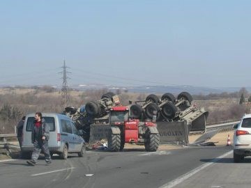 ТИР се обърна на магистрала „Хемус” и разпиля зърно по нея.