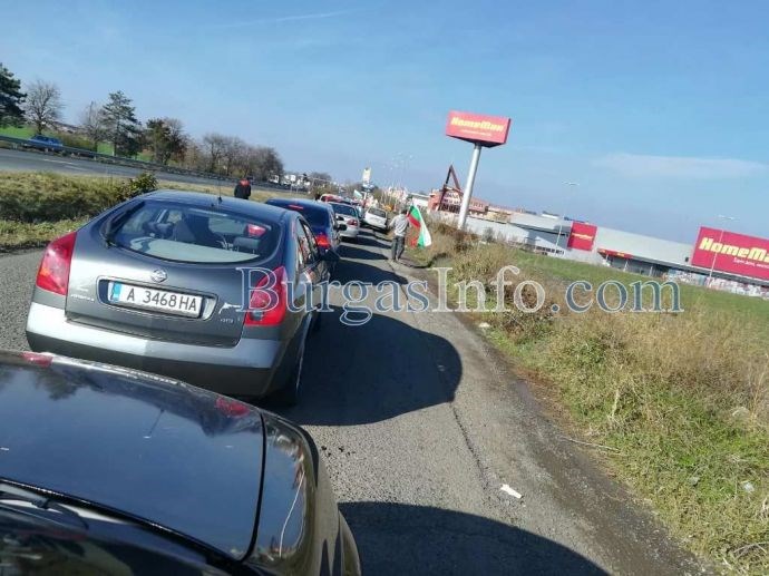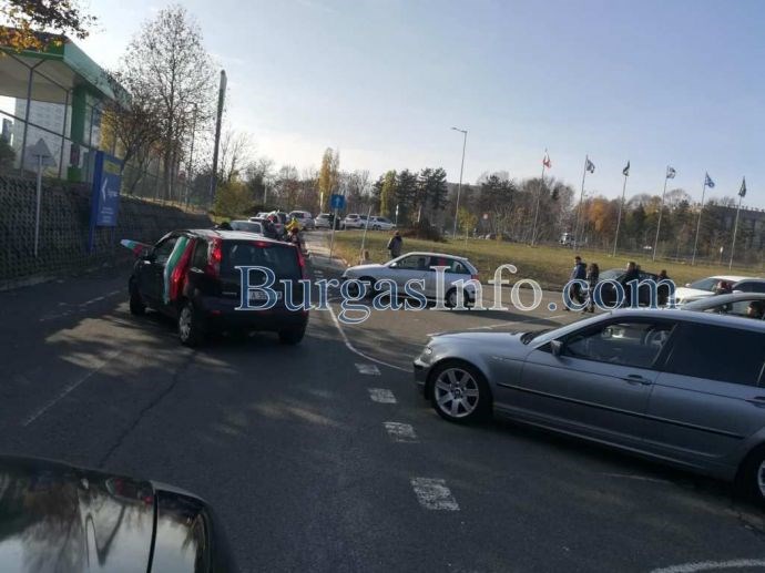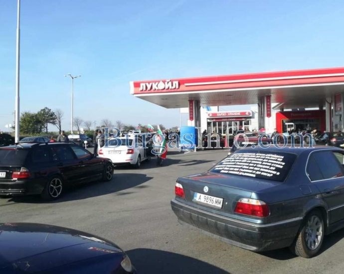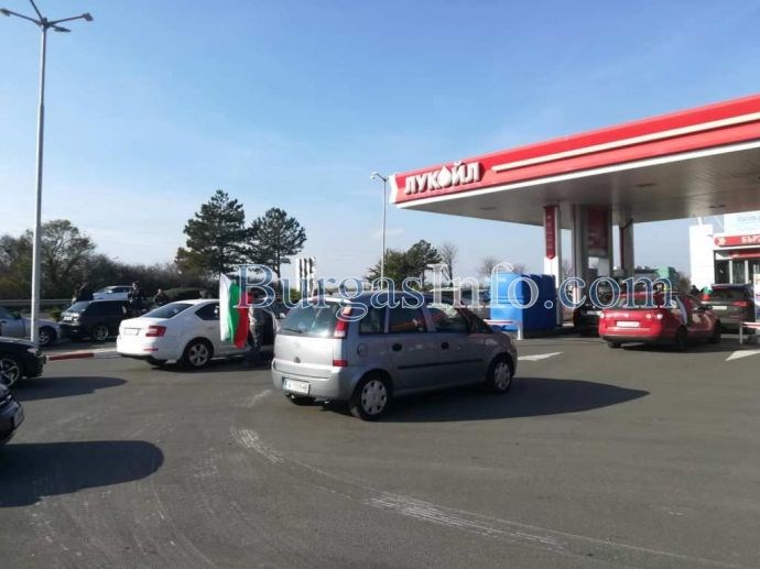Над 100 коли обсадиха бензиностанцията на „Лукойл” на изхода на Бургас към София.