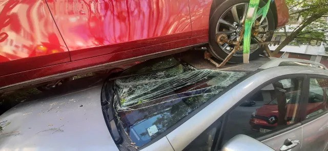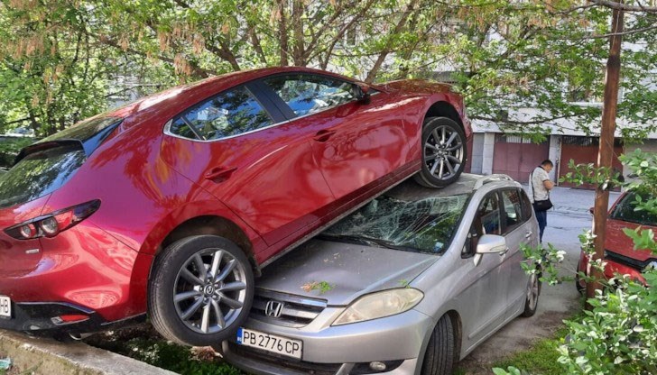 Възрастна жена „приземи“ автомобила си върху друг при опит да паркира в Пловдив, предава bTV. За да бъде извадено превозното средство, което се е заклещило и в клоните на дърво, бе повикан общински паяк.