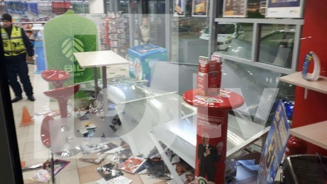 Автомобилът се забил директно във витрината на магазина, предава btv.