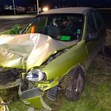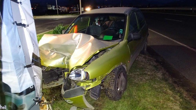 Шофьорка задряма и се заби с колата си в табела на бензиностанция