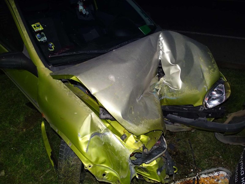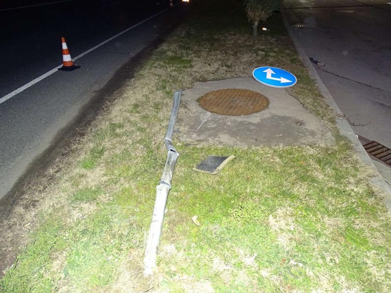 Газейки тревата, Корса-та бутнала два знака, след което се забила в табелата с цените на горивата, наричана още „монолит”.