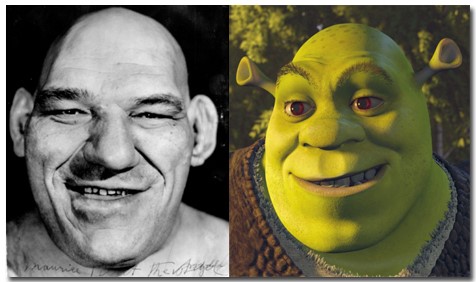 Кой би повярвал, че анимационния герой Шрек е прототип на истински човек? Оказа се, че аниматорите на едноименния филм използват истинският образ на Морис Тилт, като прототип за зеленото чудовище, пиеше The Mainline.