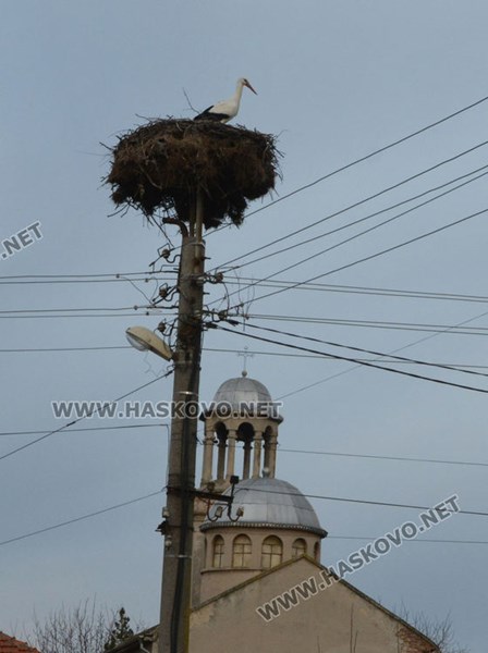 Птицата се е настанила в миналогодишното гнездо на стълб в близост до местната църква „Свети Илия”, съобщи БТА.