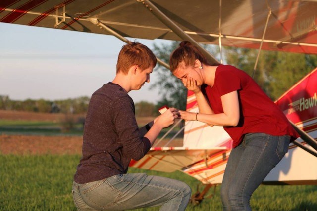 Млада жена от Северна Дакота получи изключително оригинално предложение за брак – въпросът „Ще се омъжиш ли за мен?” беше разоран върху поле, над което тя прелетя с малък самолет.