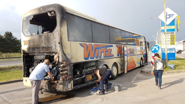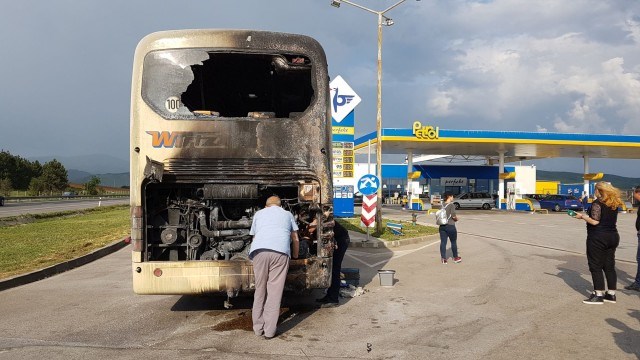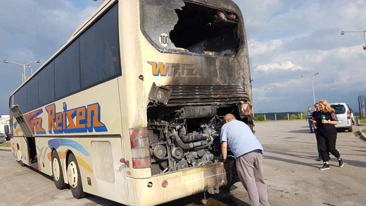 Шофьорът на автобуса е загасил пожара, а водачи на преминаващи автомобили са му помогнали.